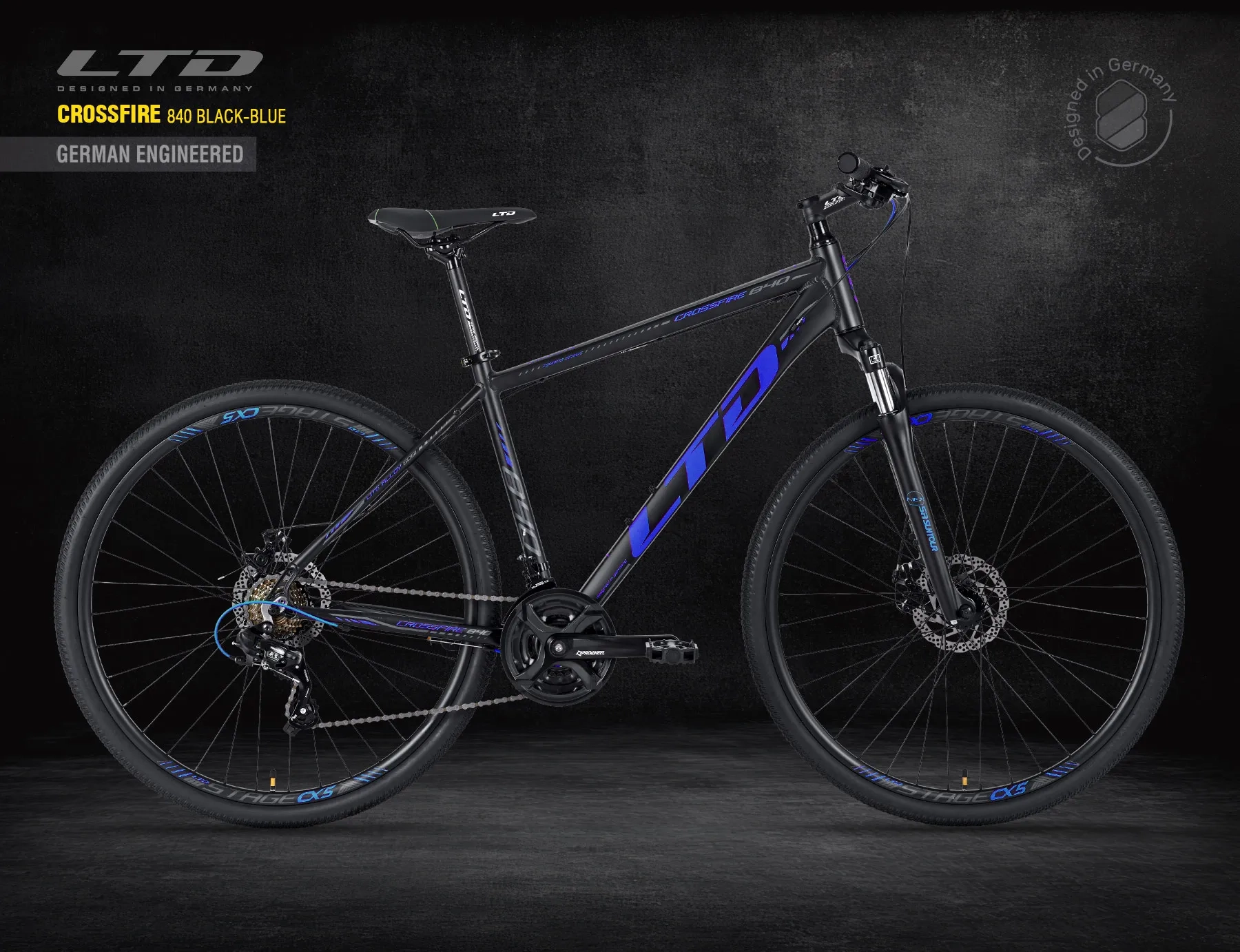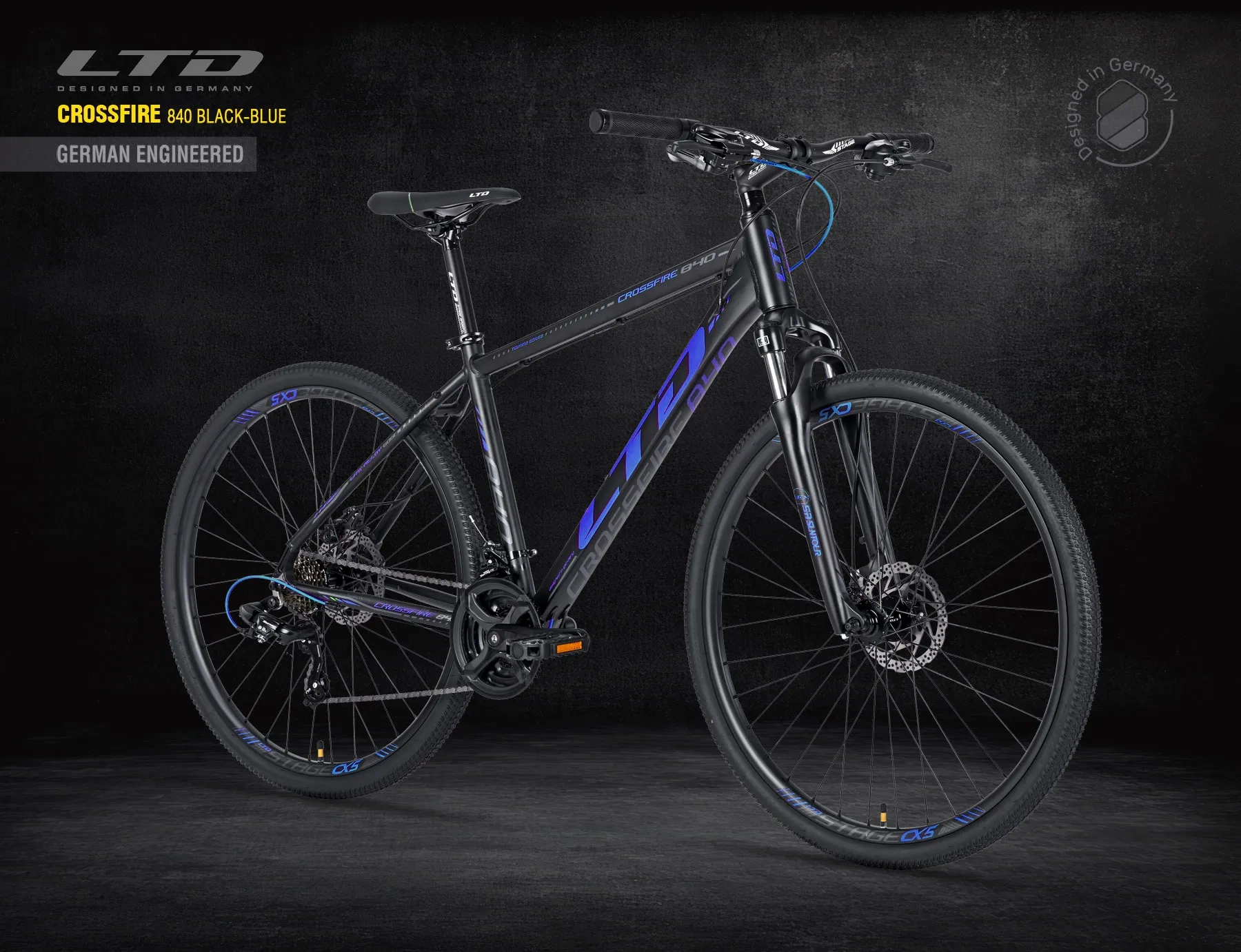 Абсолютно новый велосипед LTD CROSSFIRE 840 BLACK-BLUE 28″ — безусловный фаворит велодорожек с великолепной легкостью хода.