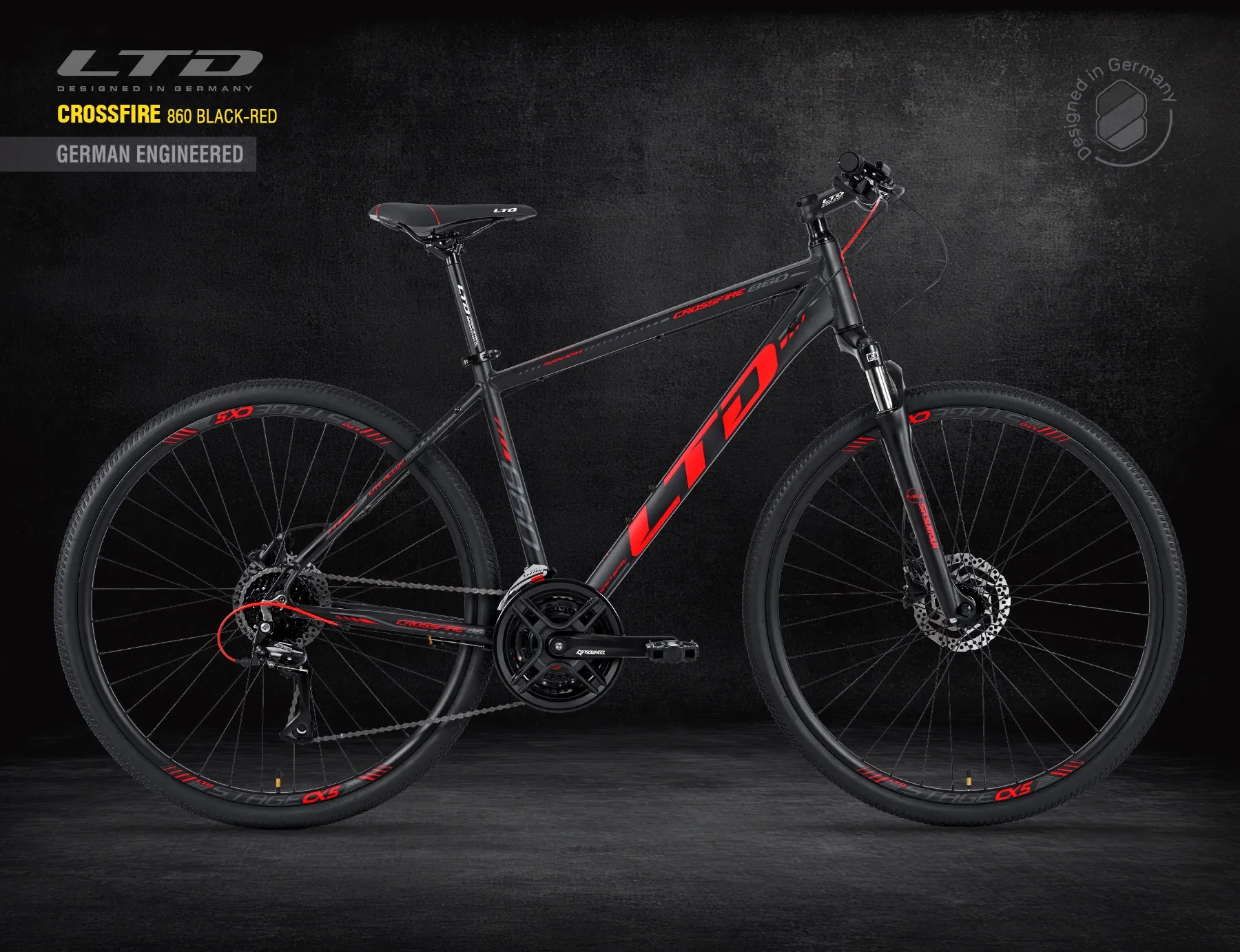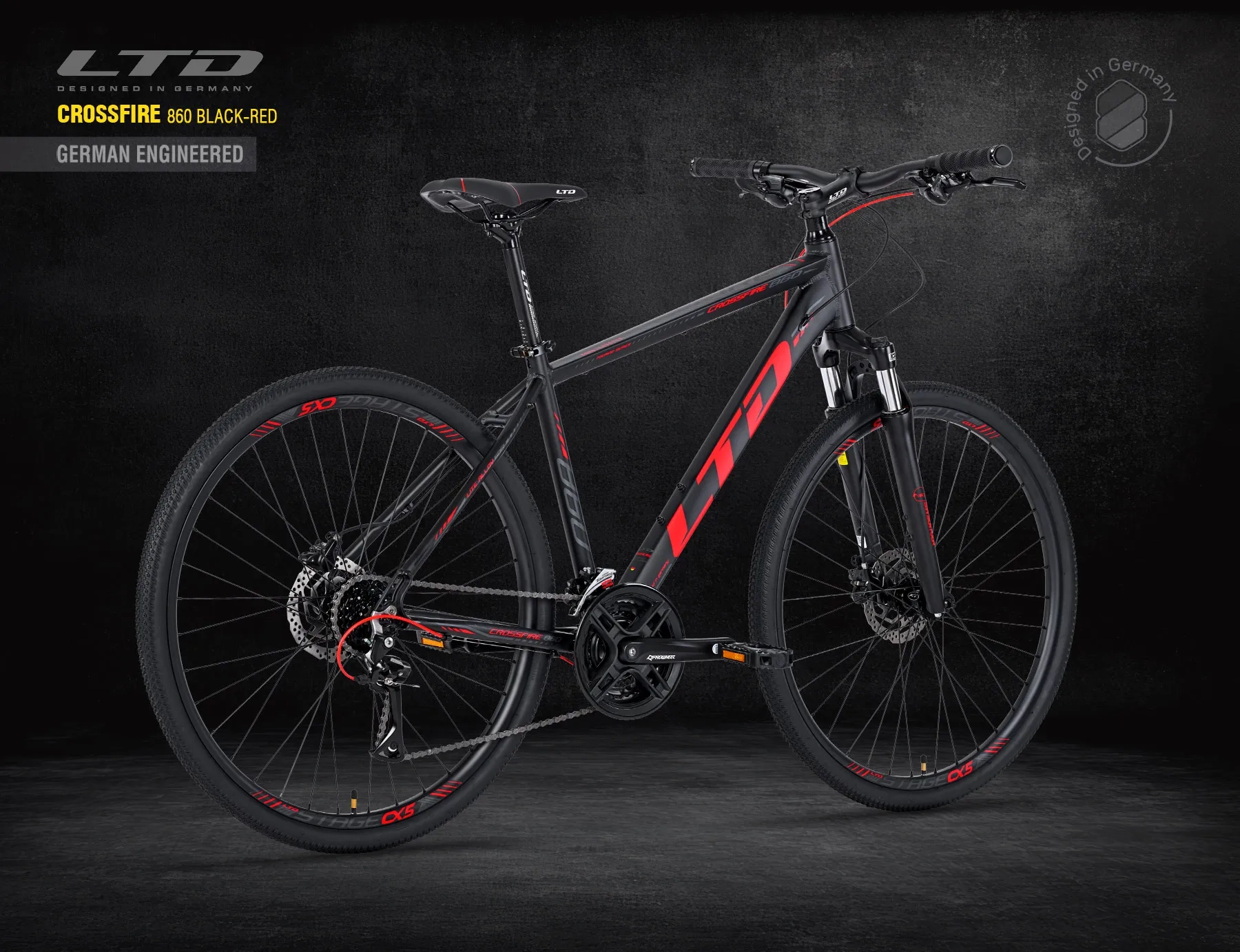 Абсолютно новый велосипед LTD CROSSFIRE 860 BLACK-RED 28″- безусловный фаворит велодорожек с великолепной легкостью хода.