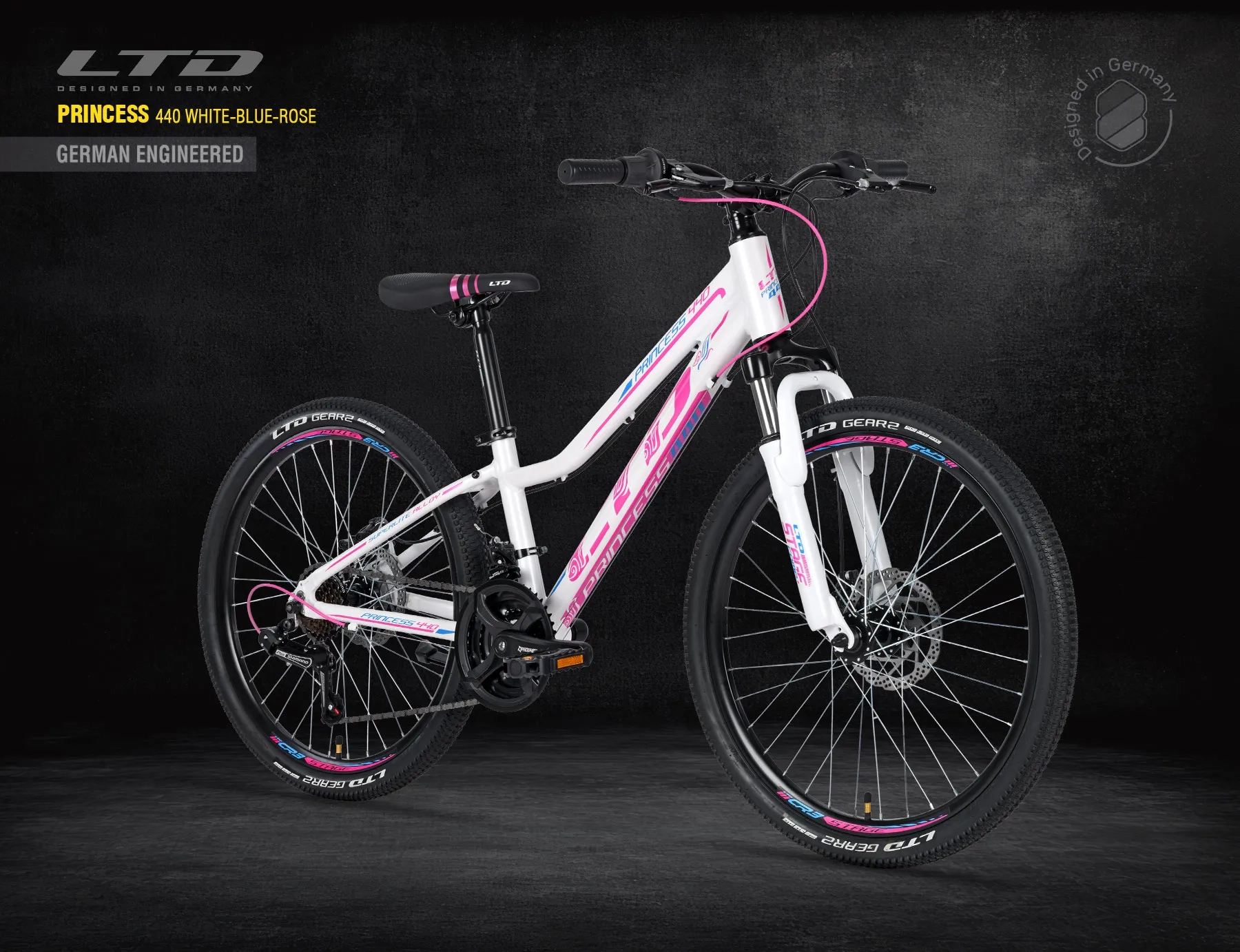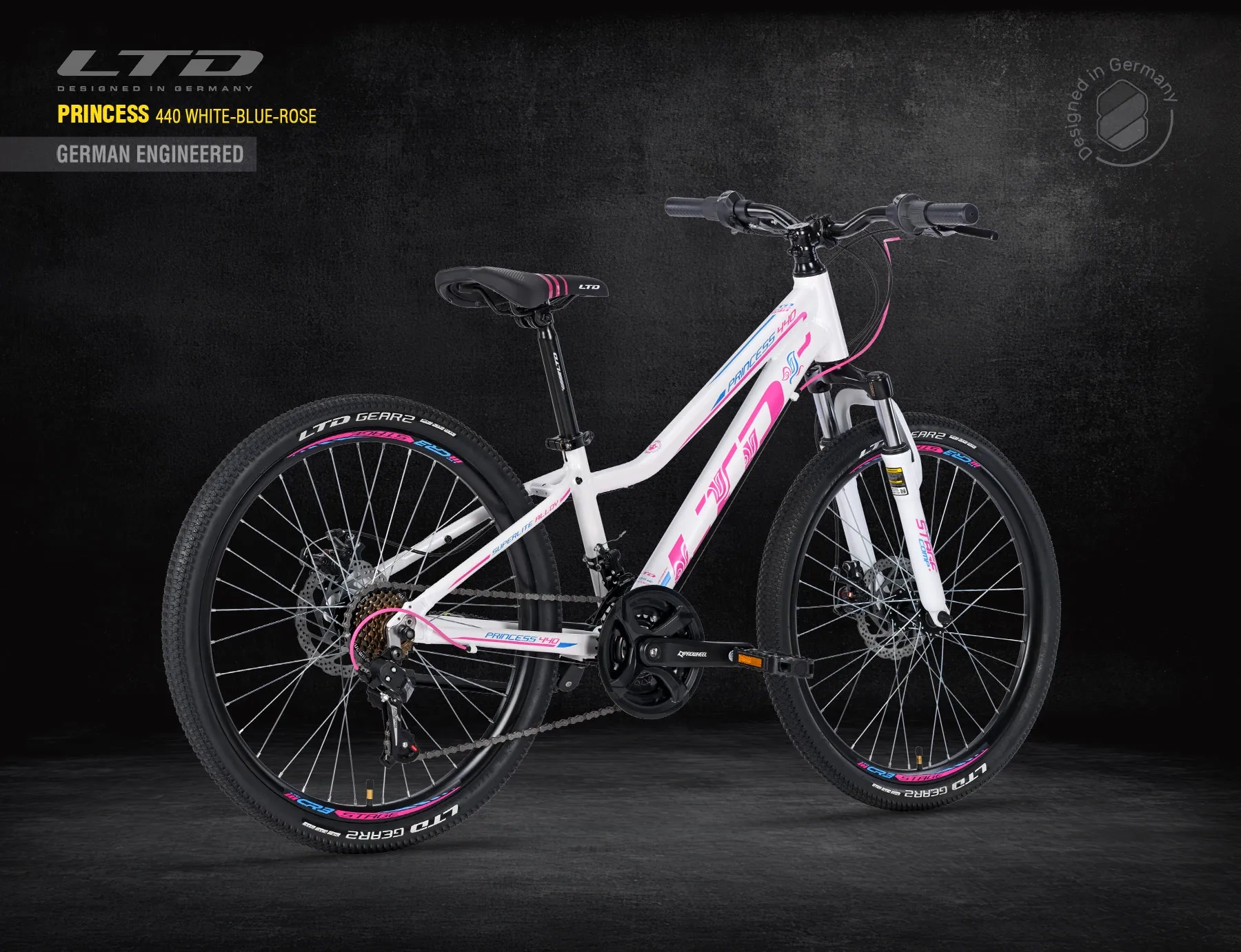 Новый велосипед LTD PRINCESS 440 WHITE-BLUE-ROSE 24″- элегантный универсальный горный велосипед для девочки 7-14 лет.