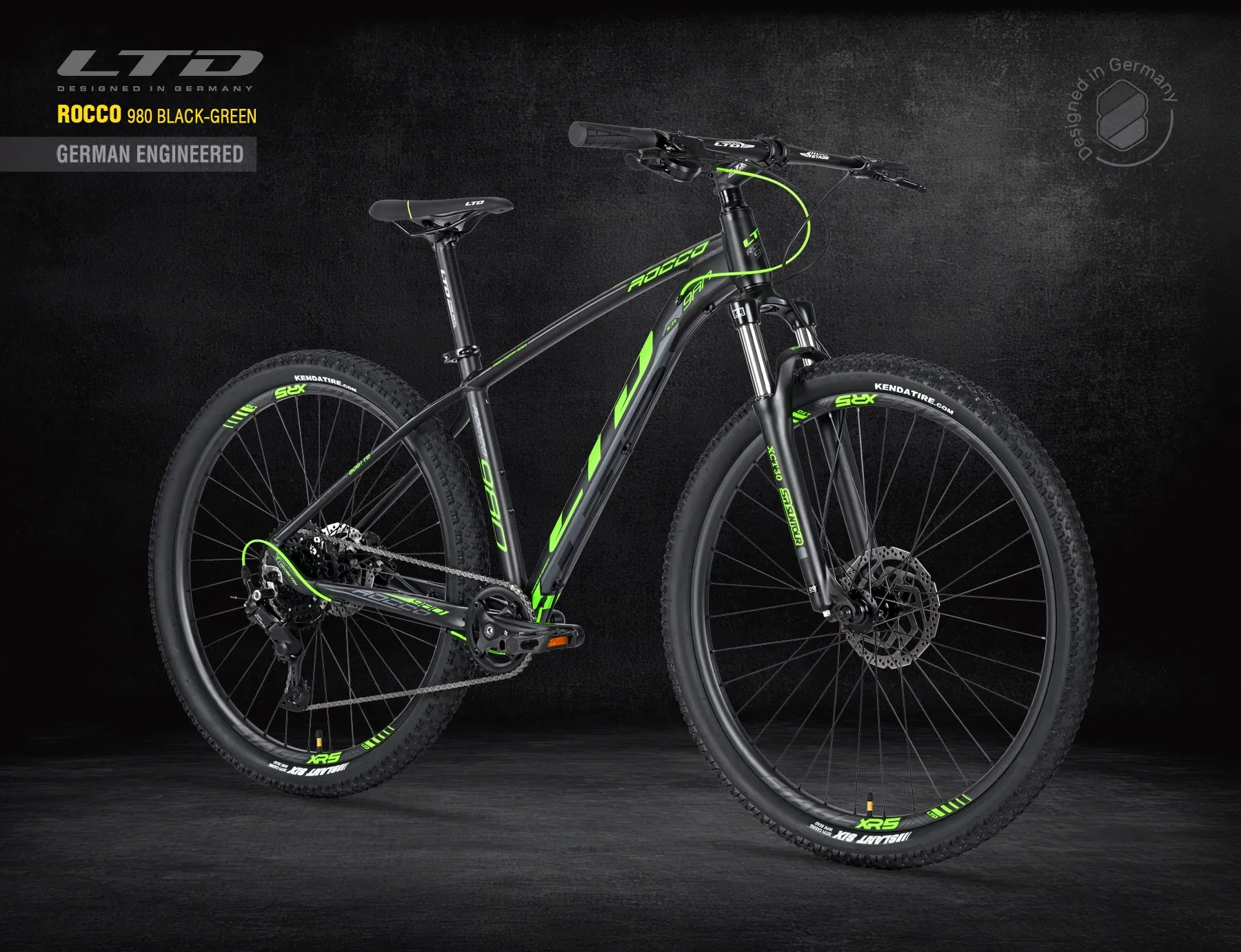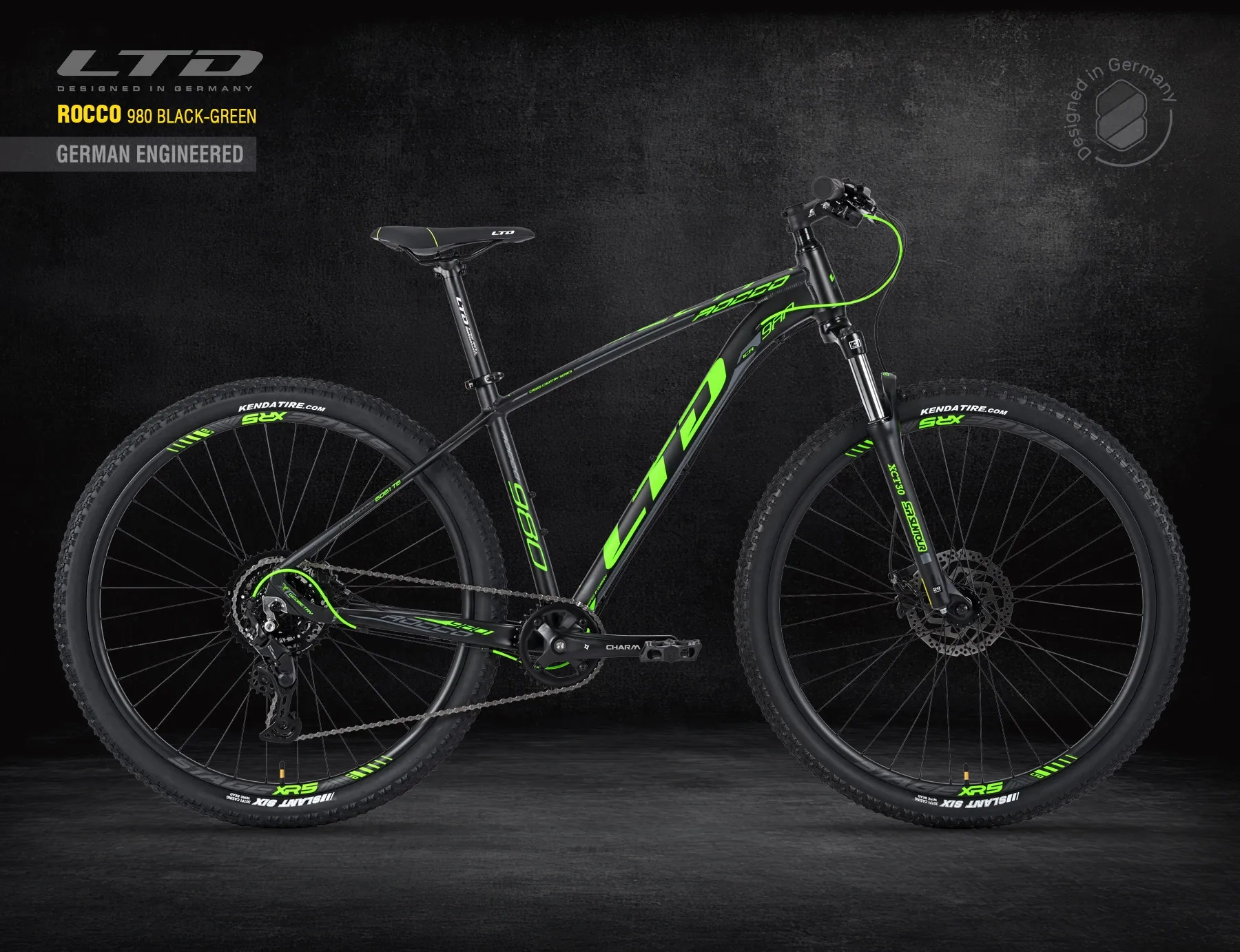 Обновленный велосипед LTD ROCCO 980 BLACK-GREEN 29″ — современный горный велосипед на 29″ дюймовых колесах с передовой трансмиссией 1х9, дающий своему владельцу максимальную уверенность и захватывающее удовольствие от езды по любой поверхности.